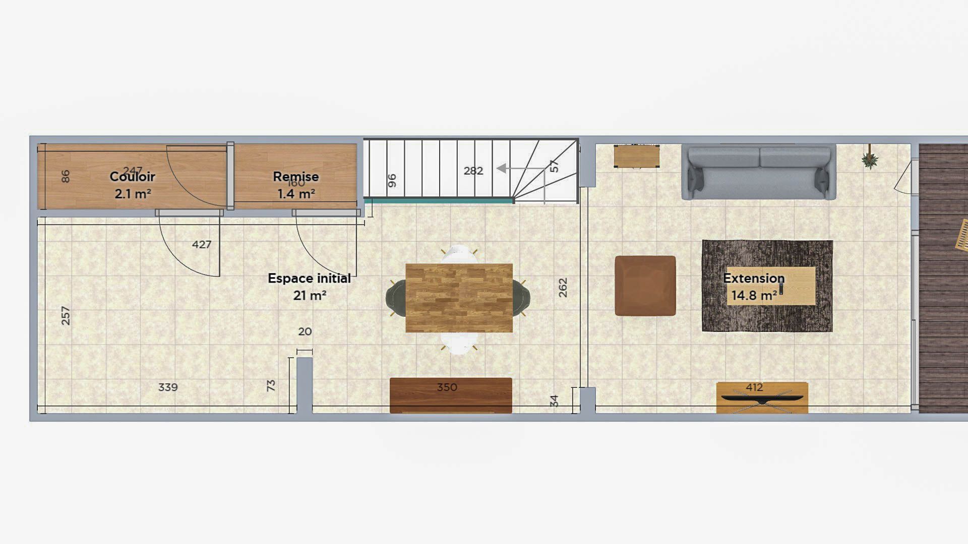 Extension fonctionnelle : L’agrandissement de la maison offre un espace supplémentaire pour une cuisine moderne et lumineuse, une salle à manger spacieuse ou un salon confortable, selon les besoins des occupants.